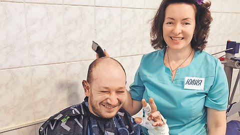 Волосы парня, оплавленные огнем, сбились сажей и гарью в сплошной клок, машинка и тут вязнет, сначала бы ножницами. Справляемся. Брею, слушаю истории и получаю 100 тысяч благодарностей. В дверь уже заглядывает следующий: